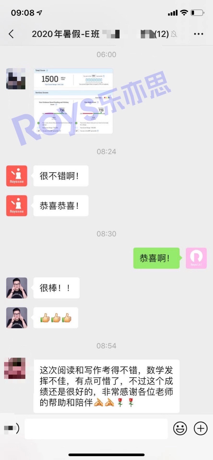 今?我天?們Roys樂亦思9月SAT考?的試?第6位高?學分?員是?自來?今年暑假線上?程全?班的J同學?本,?次考?拿試?下1500分?高的?分!這也是樂亦思?計累?第827位1500+的高分學員,?程課?期間J同學?入投?了所?時有?間和精力,課?我后?們不斷跟進和?督監?,本次考試?數在?學部分失誤?情的?況下?拿,?下總分1500分的高分,?賀祝?你!!!