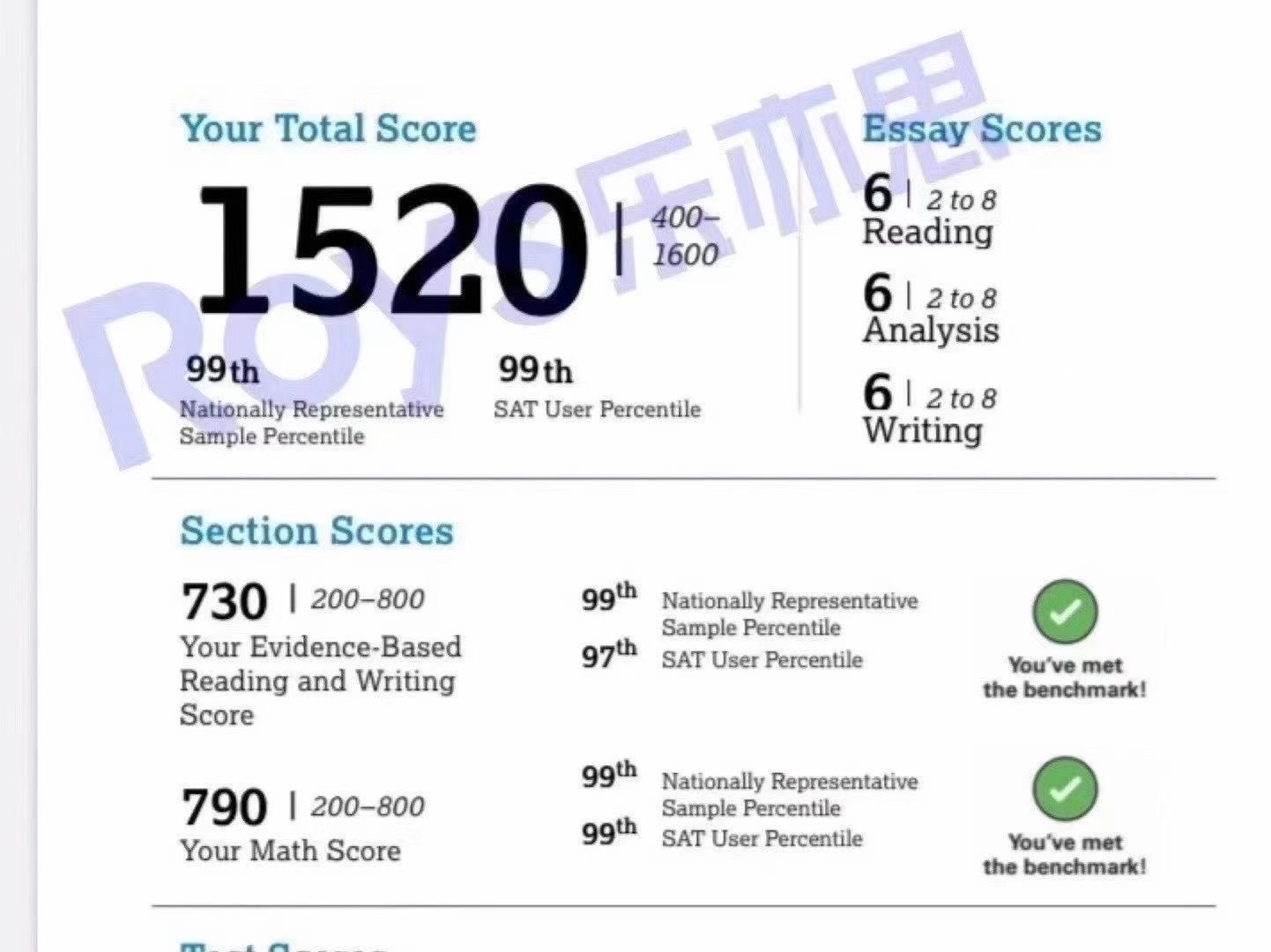 也是我們累計(jì)第814位1500+的高分學(xué)員,今年暑假在Roys樂(lè)亦思培訓(xùn)之后,本次成功取得1520分,恭喜!!!
