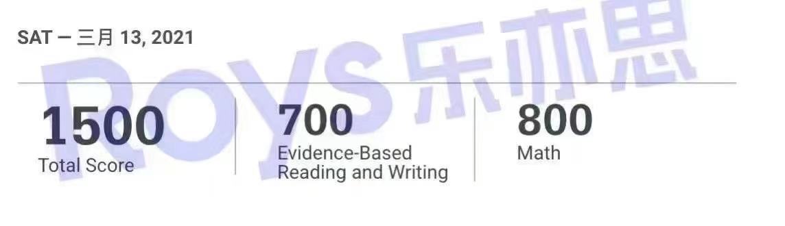 Roys樂亦思2021年3月SAT考試的第5位高分學員