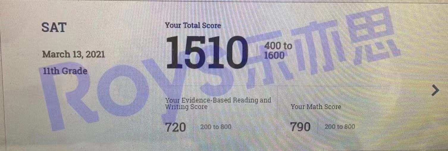 Roys樂亦思3月SAT考?的試?第1位?分高?學員,也是我們第852位1500+的高分學員?是?來自2020年暑假全程?的班?美高學員Z同?學