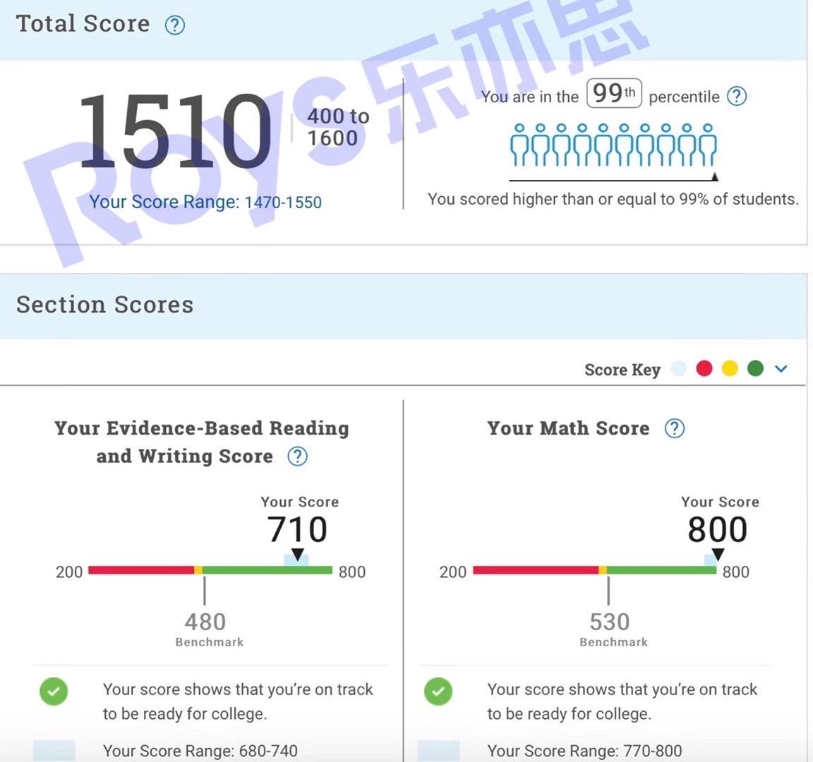 Roys樂亦思8月SAT考試的第8位高分學員